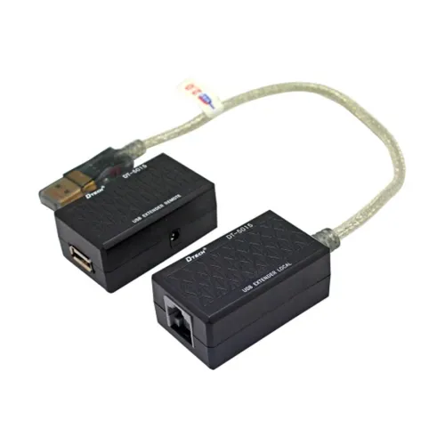 The Dtech DT-5015 60 Meter USB Network Extender is a high-performance connectivity solution designed to extend USB signals over long distances using standard LAN cables. Ideal for both home and professional setups, this extender pair supports USB 1.1 specifications and allows users to connect USB devices—such as webcams, printers, keyboards, and mice—up to 60 meters away from a USB-enabled computer. It features a USB-A male connector on one end and a LAN female port on the other, enabling seamless transmission via Cat5, Cat5e, or Cat6 patch cords (not included). The Dtech DT-5015 Converter is self-powered for low-power devices and includes a DC jack for additional power when using high-consumption peripherals like USB hard drives or Wi-Fi networking equipment. With built-in LED indicators for easy status monitoring and compatibility across multiple operating systems, including Windows 98/ME/2000/XP/Vista and Mac OS 9.0 or later, this black-colored extender offers reliable performance and plug-and-play convenience. Whether you're setting up a remote workstation or managing devices across a large space, the Dtech DT-5015 ensures stable and efficient USB connectivity.