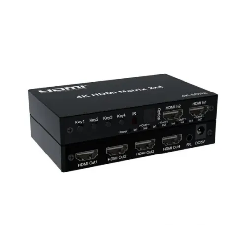 The Dtech DT-7224W 2 Input 4 Output HDMI Matrix Switch is a high-performance HDMI 2.0 solution designed to streamline multi-display setups with precision and ease. Featuring 2 HDMI inputs and 4 HDMI outputs, this 2x4 matrix switch allows users to route two video sources to up to four screens simultaneously—perfect for home theaters, conference rooms, retail displays, or control centers. With support for ultra-clear 4K resolution at 60Hz, it ensures vibrant visuals and smooth playback across all connected devices. The Dtech DT-7224W Converter also includes audio extraction via 3.5mm analog and optical TOSLINK outputs, offering flexible sound routing for external speakers or audio systems. Fully plug-and-play, it requires no software installation and comes with a remote control for effortless switching and configuration. Compatible with HDMI 2.0 and HDCP 2.2, this matrix switch guarantees broad device support and secure content transmission—making it an ideal choice for professionals and tech enthusiasts seeking reliable, high-quality HDMI distribution.