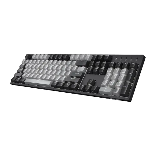 The Durgod K310 Backlit Mechanical Keyboard supports macOS, Windows, Linux, Android, and iOS, offering wide compatibility for modern settings. The Durgod K310 Mechanical Keyboard connects via a robust USB-C wired mode with a fast 1000Hz polling rate, resulting in responsive input and consistent performance. The Durgod K310 Keyboard supports full N-key rollover and multimedia function keys, enabling for precise typing and easy media management during extended use. The Durgod Mechanical Keyboard usage is improved with all-keys hot-swappable functionality, allowing users to simply replace mechanical switches and modify typing sensation; however, satellite axes do not enable hot swap. The Durgod K310 Mechanical Keyboard design features white backlighting and a white keyboard plate, as well as several lighting options that produce a bright starry sky effect for a clean and professional appearance. The adjustable typing angle of 7° and 10° enhances comfort during extended sessions. The keyboard is made of an ABS plastic frame and an ABS plastic bottom case, and it is strengthened with a built-in stabilized steel plate for maximum rigidity and stability. The Durgod K310 Backlit Hot-Swappable Mechanical Keyboard employs precisely calibrated satellite axes for large keys, resulting in seamless keycap replacement and a refined typing experience. The Cherry profile double-shot PBT keycaps have a two-color closed character design with a carefully regulated painting technique and frosted technology, resulting in a silky tactile sensation, strong three-dimensional appearance, oil resistance, and long-term wearability. The Durgod K310 Backlit Mechanical Keyboard, finished in a polished frosted dark gray metallic texture, combines esthetic appeal with everyday practicality.