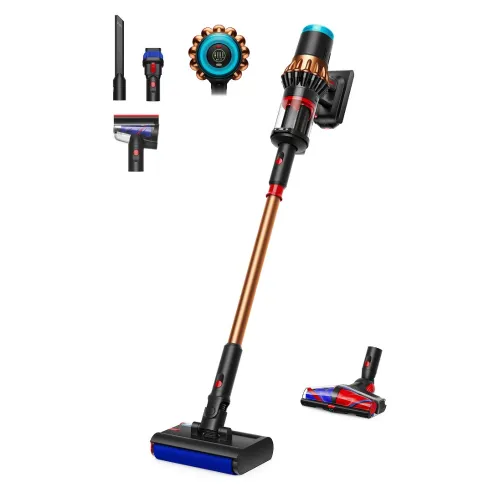 The Dyson V16 Piston Animal Submarine Wet and Dry Vacuum Cleaner is a high-performance cordless cleaning solution built for families that require power, hygiene, and versatility in one innovative product. Powered by Dyson's latest Hyperdymium 900W engine, the Dyson Wet and Dry Vacuum Cleaner provides up to 315AW of fade-free suction power, making it the most powerful anti-tangle cordless vacuum in its class. The Dyson V16 Piston Vacuum Cleaner combines innovative dynamic cyclones and HEPA filtration to collect 99.9% of particles as small as 0.1 microns, resulting in a cleaner and healthier indoor environment. This Dyson V16 Piston Vacuum Cleaner has a maximum run time of 70 minutes, making it ideal for whole-house cleaning. The All Floor Cones Sense cleaner head has two revolving conical brush bars that untangle long hair up to 25 inches and drive dirt into the bin. Intelligent dust detect sensors and an LCD screen provide real-time feedback, while the system automatically adjusts suction and brush bar speed for all floor types. The Dyson V16 Piston Vacuum Cleaner features a revolutionary Submarine 2.0 wet roller head that eliminates spills and stains, adjusts hydration levels, and includes a max mode for tougher problems. Built-in crevice tools allow for comprehensive cleaning, and bin compression technology stores up to 30 days' worth of dust and debris.