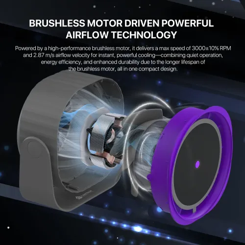 The Fantech PAC4 Lite Portable Cooler Fan is a compact, efficient, and stylish cooling solution designed for desktop, bedside, and personal use, making it an ideal choice for everyday comfort. Powered by a durable brushless motor, the Fantech PAC4 Lite Portable Mini Fan delivers smooth and stable performance while maintaining a low noise level of ≤ 41 dB, ensuring a quiet environment for work, study, or sleep. Featuring 3 adjustable speed levels and a maximum speed of 3000±10% RPM, the Fantech PAC4 Lite Cooler Fan allows you to easily customize airflow according to your needs. With an air volume of 2.87 m/s, the Fantech PAC4 Lite provides strong and consistent air circulation for small to medium spaces. This portable fan is powered by a convenient USB Type-C charging interface, making it compatible with laptops, power banks, and wall adapters. Its lightweight 436±5g body and compact 176.8 × 90 × 176.8 mm design make the Fantech PAC4 Lite Portable Cooler Fan easy to carry, place, and use anywhere, whether at home, in the office, or while traveling.