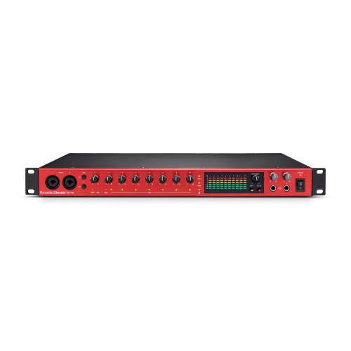 The Focusrite Clarett+ 8Pre is a professional 18-in/20-out USB-C audio interface designed for bands, project studios, and music producers who want high-quality sound and maximum versatility. It has eight high-headroom mic/line preamps, including two with Hi-Z instrument inputs, with a gain range of +57dB, an ultra-low EIN of -129dBu, and THD+N as low as -110dB. Each preamp features Focusrite's distinctive Air mode, which captures the purity and character of older transformer-based circuits. The Focusrite Clarett+ 8Pre Audio Interface offers clean 24-bit/192 kHz AD/DA conversion for clear audio capture and playback, making it perfect for demanding multi-track recording sessions. It is compatible with both Mac and Windows computers and features USB-C and USB-A connectivity, as well as an integrated power source for dependable performance. The Focusrite Clarett+ 8Pre Type-C Audio Interface has two independent headphone outputs, two dedicated monitor outputs, and four more line outputs for flexible monitoring and routing. ADAT and S/PDIF I/O support extra digital inputs and outputs, as well as a Wordclock output for synchronization with other studio gear. The Focusrite Clarett+ 8Pre 18x20 Type-C Audio Interface has MIDI I/O to connect keyboards and controllers. The line inputs provide a maximum input level of 26dBu with 118dB dynamic range and -100dB THD+N, while the monitor outputs have 124dB dynamic range and -106dB THD+N for ultra-clear listening. Headphone outputs provide up to 16dBu and 118dB dynamic range for thorough monitoring. The Focusrite Clarett+ 8Pre 18x20 Type-C Audio Interface has multi-segment LED metering on the front panel to maintain appropriate gain structure across all channels. The Focusrite Clarett+ 8Pre 18x20 Type-C Audio Interface includes strong production tools, including Ableton Live Lite, Pro Tools Artist, and the Hitmaker Expansion software suite, ensuring that you have everything you need to begin recording and producing music.