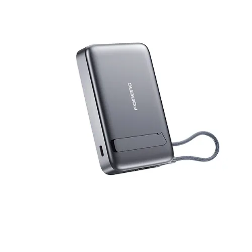 The Foneng PX152 10000mAh Qi2 Wireless Power Bank is a modern magnetic wireless power bank designed for fast, convenient, and cable-free charging. With Qi2 wireless charging support (up to 15W), it securely attaches to compatible smartphones, delivering stable and efficient charging without the need for cables. Equipped with 35W fast wired charging, this power bank can quickly charge smartphones, tablets, and even some lightweight laptops. The built-in Type-C cable adds extra convenience, eliminating the need to carry additional cables while traveling. The 10000mAh battery capacity provides reliable backup for daily use, while features like pass-through charging, LCD battery display, and foreign object detection (FOD) ensure safe and smart charging performance. Designed with a premium metal finish and compact form factor, the PX152 also includes a built-in stand, allowing you to watch videos or attend calls while charging. Whether you're commuting, traveling, or working, this Qi2 magnetic power bank offers a perfect mix of portability, speed, and functionality.