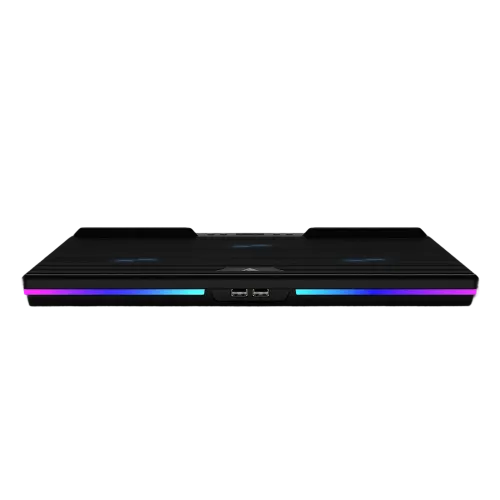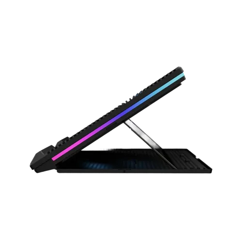 The Gamdias AETHER M1 RGB Laptop Cooler comes with a phone stand and is compatible with laptops under 19 inches. The robust ABS plastic body houses three high-efficiency 120mm fans that operate at a speed of 1300 ± 10% RPM. Each fan produces 28.23 CFM of air while emitting only 21.60 dBA of noise, ensuring efficient heat dissipation without disrupting your workflow. The Gamdias AETHER M1 RGB Laptop Cooler pulls power from a 5V supply and consumes between 620 and 760 mA, with a rated power of 3.1 and 3.8 watts for reliable, efficient performance. Integrated blue LED fans and built-in RGB lighting effects add visual appeal, which is complemented by 10 adjustable lighting options to match your gaming or productivity setup. The control panel has an easy-to-read LCD screen that enables for exact adjustment of fan speed and lighting settings. The Gamdias AETHER M1 Laptop Cooler is designed to be flexible and comfortable, with seven adjustable height levels to accommodate a variety of ergonomic needs. Stable stoppers keep your device in place while you use it, and a built-in phone stand provides convenience by allowing you to quickly access your smartphone. The cooler has dual USB-A connections for constant communication, allowing you to power the cooler while also using other USB devices. The Gamdias AETHER M1 Laptop Cooler's compact yet effective design makes it suitable for gamers, professionals, and content creators who require consistent cooling over extended sessions.