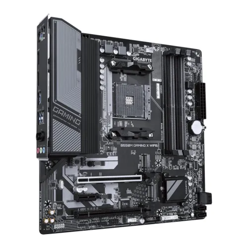 The GIGABYTE B550M GAMING X WIFI6 AM4 mATX Motherboard is a powerful and reliable choice for gamers and creators, delivering next‑generation performance with support for AMD Ryzen processors on the AM4 socket, DDR4 high‑speed memory, and PCIe 4.0 for ultra‑fast graphics cards and NVMe SSDs. Built with Gigabyte Ultra Durable components, advanced thermal design, and Smart Fan 5 technology, it ensures stable operation under heavy workloads, while integrated WiFi 6 and Gigabit LAN provide seamless connectivity for online gaming and productivity. With dual M.2 slots featuring thermal guards, multiple USB 3.2 Gen1 and Gen2 ports, HDMI and DisplayPort outputs, and immersive audio powered by Realtek codec, this compact board balances affordability with premium features. The Gigabyte 550 motherboard design makes it future‑ready, while RGB Fusion lighting and Q‑Flash Plus BIOS update support add customization and ease of use. Compact yet versatile, the Gigabyte B550M Motherboard is ideal for building efficient rigs that demand speed, stability, and connectivity, making it a standout Gigabyte WiFi Motherboard solution for modern PC builds.