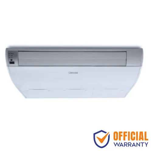 The Gree GS-48XDWV32 4 Ton Inverter Ceiling AC is designed for larger spaces that demand high efficiency, durability, and reliable performance. With a robust cooling capacity of 48,000 BTU per hour, this Gree 4 Ton AC is designed to cover areas up to 361-480 square feet, making it perfect for commercial establishments, offices, restaurants, classrooms, and spacious living areas. The Gree 4 Ton Ceiling AC comes with inverter technology that ensures smart energy saving by automatically adjusting the compressor speed to maintain consistent cooling while consuming less power. Its 5.2 kW power consumption and eco-friendly R-32 refrigerant add to its efficiency and sustainability. The unit offers an impressive airflow volume of 2200 m3/hr, enhanced by wide-angle louvers and over long-distance air throw, ensuring even cooling across every corner of the room. Built with 100% copper condensing and evaporating coils, the Gree GS-48XDWV32 4 Ton Inverter Ceiling AC provides superior durability, faster cooling, and a longer lifespan, while the golden fin condenser protects against corrosion. Designed for convenience, it operates quietly at just 52 dB indoors, ensuring a comfortable environment without disturbing noise. The Gree Inverter AC includes advanced features such as multi-fan speeds, airflow direction control, cold plasma technology, and low voltage startup for seamless performance even in unstable power conditions. Comfort-focused functions like sleeping mode, cold air prevention, intelligent defrosting, drying operation, and air purifying filters further enhance the user experience. Additionally, the Gree GS-48XDWV32 4 Ton Inverter Ceiling AC highlights include turbo cooling, auto restart, self-diagnosis, auto clean, memory function, timer, clock display, and child lock for safety and convenience. Its ceiling-suspended design not only saves space but also complements modern interiors with a sleek look and LED display.