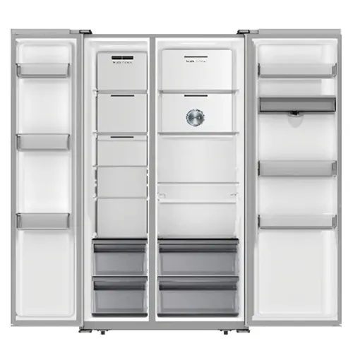 The Hisense RS3G558NMB/BD3 580L Refrigerator is a premium, high-capacity appliance engineered to deliver advanced cooling performance and modern design. With a total capacity of 580 liters, the Hisense RS3G558NMB/BD3 Side by Side Fridge offers a spacious 355L refrigerator section and a 225L freezer, making it ideal for large families or contemporary kitchens. Its premium black glass door panel and tempered glass shelves offer both style and durability. Inside, the Monet Grey ABS liner adds a refined finish. This Hisense RS3G558NMB/BD3 Fridge features an inverter compressor with R600a refrigerant, providing energy-efficient operation and consistent cooling. The built-in condenser and compressor back cover enhance its durability and performance. With features like Super Cool and Super Freeze functions and a multi-airflow system, the Hisense RS3G558NMB/BD3 Refrigerator ensures uniform cooling and quick preservation of food. The fridge section includes three decorative glass shelves, three big door racks, two splicing drawers, an egg tray, and a beverage tray, all illuminated by an LED light on the ceiling. The freezer compartment is equipped with four glass shelves, three door racks, two drawers, an ice maker, and its LED light. Additionally, the built-in water dispenser offers convenience and energy savings by providing cold water without opening the door. Designed for normal and subtropical climates (N/ST), this 580L side-by-side refrigerator operates efficiently on 220- 240V power. Its dimensions, 910x615x1786 mm allow it to fit perfectly in most modern kitchen spaces while adding a touch of luxury. Combining smart technology, premium aesthetics, and generous capacity, the Hisense RS3G558NMB/BD3 580L Refrigerator is an excellent choice for those who want performance and elegance in one durable appliance.