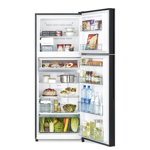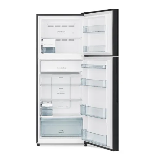This Hitachi R-VGY490PB0 Refrigerator has a gross capacity of 443 litres and a net capacity of 390 litres, with a 268 litre refrigerator compartment, 133 litre freezer, and a versatile selectable zone that adjusts to your storage requirements. The Hitachi R-VGY490PB0 Inverter Refrigerator uses innovative inverter technology with Dual Fan Cooling to offer uniform air distribution, stable temperatures, and low energy use. The Hitachi R-VGY490PB0 Refrigerator's selectable zone allows for varied temperature settings such as freezing at -12°C, soft freeze at -3°C, chill or meat at 1°C, and refrigerator mode at 3°C, making it suitable for storing a variety of foods. Soft Freeze technology keeps meat and fish fresh without hard freezing, allowing for easy cutting, portioning, and immediate cooking without defrosting. The moisture guard vegetable compartment can retain up to 90% moisture, keeping veggies fresh for up to seven days. A Triple Power Filter effectively deodorizes and removes up to 99 percent of microorganisms, assuring clean storage. The Hitachi R-VGY490PB0 Inverter Refrigerator boasts an automatic ice maker with a 5L water tank that produces pure ice on a constant basis, while the quick freezing option speeds up the freezing process by about 29%. When needed, the quick cooling option chills goods about 17 percent faster. The Hitachi Refrigerator boasts tempered glass shelves that are scratch resistant, heat resistant, and capable of supporting up to 100kg each. An LED control panel and illumination improve visibility and ease of use. Additional features include Dual Sensing Control with Eco Thermo Sensor, no frost cooling, CFC and HFC-free R-600a refrigerant, mould-free door gasket, and durable tempered glass shelving, making the Hitachi R-VGY490PB0 443L Inverter Refrigerator a dependable, hygienic, and user-focused cooling solution.