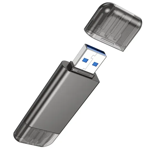 The Hoco HB39 2-in-1 USB & Type-C 3.0 Card Reader is a small, advanced device designed for quick and dependable data transfer. With dual interface connection, this flexible device works effortlessly as both a Hoco HB39 USB Card Reader and a Hoco HB39 Type-C Card Reader, enabling compatibility with a broad range of devices such as laptops, tablets, and smartphones. The Hoco HB39 Card Reader, with a potential transfer speed of up to 5 Gbps, allows for quick file transfers, making it ideal for customers working with huge media files or extensive data sets. Its dual card slot allows for simultaneous SD and TF card reading, which considerably increases productivity by letting users to read and write to two memory cards at once. Supporting up to 2TB memory capacity, this USB and Type-C card reader handles high-volume storage needs with ease. Built from a premium combination of zinc alloy and PC, the Hoco HB39 Card Reader is both durable and ultra-lightweight at just 23g. Measuring only 69.5 × 22 × 9mm, it is compact enough to fit in your pocket, making it ideal for on-the-go professionals. The card reader operates efficiently at just 5V/100mA and offers broad compatibility with Windows, Mac OS, Linux, and Android systems. Whether you're a content creator, traveler, or business user, the Hoco HB39 2-in-1 USB & Type-C 3.0 Card Reader delivers the speed, reliability, and portability you need for effortless data access and transfer.