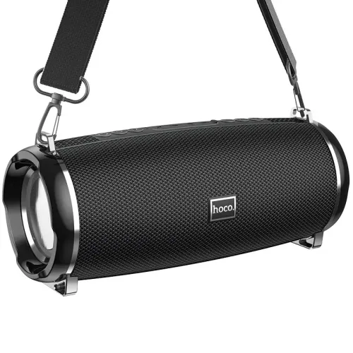 The Hoco HC2 Wireless Bluetooth Speaker is a portable speaker featuring 360-degree surround sound and flashing LED lights. Its IPX5 waterproof certification and convenient carry strap make it an outstanding outdoor speaker, ideal for supporting outdoor sports. The HC2 speaker includes a 2400 mAh battery that lasts for 6 hours of calls and music. It supports Bluetooth, TF card, USB, AUX, FM, and other playback modes. The speaker is available in a variety of colors, so there is something for everyone, and it makes the perfect gift. The Hoco HC2 comes with 3 months warranty.