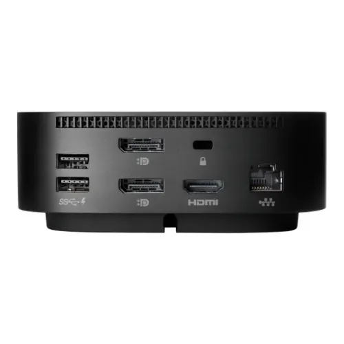 The HP G5 USB Type-C Dock Station is a powerful and comprehensive docking solution engineered to maximize the efficiency of modern workspaces. Designed for seamless compatibility with HP laptops, MacBook computers, and other USB-C-enabled devices, it supports a wide range of operating systems, including Windows 10, Windows 11, macOS, and Chrome OS, making it a truly universal option among HP G5 Type-C Hubs and Docks. With a compact and professional black design, this HP G5 Dock Station measures 12.2 x 12.2 x 4.5 cm and weighs just 0.75 kg, offering a neat and space-saving setup ideal for both office and home environments. The HP G5 USB Type-C Dock Station utilizes a USB Type-C interface to provide up to 100W of power to connected devices, supporting multiple voltage profiles—5V, 9V, 10V, 12V, 15V, and 20V, all at 5A maximum—for efficient USB Power Delivery and robust performance across various laptops. This high-performance hub includes a wide array of connectivity options designed to enhance productivity and multitasking. On the front, it features 1 USB-C port with 15W power output and 1 USB-C cable for host connection. The side panel includes 2 USB 3.0 charging ports and a combo audio jack, perfect for plugging in peripherals and audio devices. The back panel of this HP G5 Hubs and Docks setup is fully equipped with 2 additional USB 3.0 charging ports, 2 DisplayPort outputs, 1 HDMI 2.0 port for 4K video output, 1 RJ45 Ethernet port for reliable wired internet access, and 1 standard lock slot for added physical security (lock sold separately). The dock supports dual external monitors in addition to the host laptop’s display, enabling an extended and efficient multi-monitor workstation. It comes bundled with an AC adapter and AC power cord, delivering consistent performance. The HP G5 USB Type-C Dock Station is the ideal choice for professionals seeking a powerful, multifunctional docking hub under the HP G5 Hubs and Docks lineup.