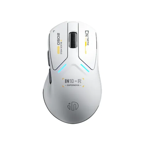 The IN10R Gaming Mouse supports 2.4G wireless, Bluetooth, and wired connections, allowing effortless switching across devices. Its adjustable polling rate from 125Hz to 8000Hz adapts to different gaming scenarios, while the 800mAh lithium battery provides extended playtime. With a Type-C charging interface and up to 10m wireless range, it ensures stable, reliable performance for both competitive gaming and everyday use.