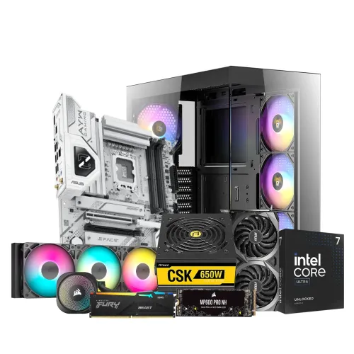 The Intel Core Ultra 7 265K Gaming Desktop PC is designed for ultimate gaming and productivity. At its core is the Intel Core Ultra 7 265K Arrow Lake Processor, known for its exceptional performance and efficiency. The system is kept cool by the Corsair NAUTILUS 360 RS ARGB 360mm Liquid CPU Cooler, ensuring optimal temperatures even during intense gaming sessions. The ASUS Z890 AYW GAMING WIFI W LGA 1851 ATX Motherboard provides robust connectivity and support for the latest components, enhancing overall system stability and performance. Equipped with the MSI GeForce RTX 3060 VENTUS 2X OC 12GB GDDR6 Graphics Card, this PC delivers stunning visuals and smooth frame rates, perfect for high-end gaming and creative tasks. Storage needs are handled by the Corsair MP600 PRO NH 1TB PCIe Gen4 x4 NVMe M.2 SSD With DRAM Cache, offering fast data access and ample space for games and applications. The Intel Core Ultra Gaming PC boasts the Corsair VENGEANCE RGB 32GB DDR5 6000MHz CL30 Desktop RAM, providing high-speed memory and vibrant aesthetics. Powering the setup is the Antec CSK 650DC 650W 80+ Bronze Non-Modular Power Supply, ensuring stable and efficient power delivery. Housed in the Antec CX300 ARGB Full-View ATX Mid Tower Gaming Casing, the PC benefits from excellent airflow and a sleek design.