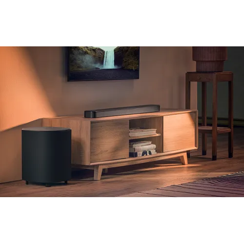 Complementing the JBL Bar 500MK2 soundbar is a robust 10" wireless subwoofer housed in a bass-reflex enclosure, delivering 300W RMS of deep, resonant bass. This subwoofer adds thunderous low-end impact to action scenes, music, and gaming, creating a full-bodied sound profile. With a total harmonic distortion of just 1%, it maintains audio fidelity even at high volumes. The wireless design allows flexible placement without clutter, making it easy to integrate into any room. Whether you're enjoying cinematic explosions or subtle musical basslines, the JBL Bar 500MK2 ensures every note hits with precision and power.