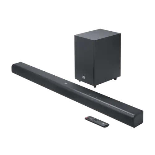 The JBL Cinema SB150 2.1 Wireless Soundbar with Compact Subwoofer is designed to deliver a powerful home entertainment experience. With its 3.1 channel sound system, the JBL Cinema SB550 soundbar produces a maximum output of 250W, combining 150W from the soundbar and 100W from the wireless subwoofer. The JBL Cinema SB550 soundbar supports Dolby Audio, ensuring clear dialogue and rich sound effects for movies and shows. Connectivity options include HDMI ARC, optical input, Bluetooth 5.3, and USB playback in the US version. The JBL Cinema SB550 soundbar features racetrack drivers and tweeters for balanced audio, while the wireless subwoofer adds deep bass. Compact dimensions and a lightweight design make the JBL Cinema SB550 soundbar suitable for modern living spaces, offering both style and performance.
