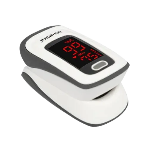 closeThe Jumper JPD-500E Fingertip Pulse Oximeter is a compact, lightweight, and highly portable health monitoring device designed for accurate and real-time measurement of blood oxygen saturation (SpO2), pulse rate (PR), and perfusion index (PI). Integrated with an advanced SpO2 sensor and a high-precision processing display module, this oximeter ensures reliable performance even under low perfusion conditions. Its user-friendly interface features a bright LED display with adjustable brightness, allowing for clear visibility of readings including SpO2 levels (ranging from 35% to 100%), pulse rate (25–250 BPM), and a dynamic bar graph for pulse strength visualization. With a resolution of 1% for SpO2 and 1 BPM for pulse rate, and an accuracy of ±1% (70%–100% SpO2) and ±1 BPM or ±1% for pulse rate, the JPD-500E delivers clinical-grade precision. The Jumper JPD-500E Pulse Oximeter operates on two 1.5V AAA alkaline batteries, offering over 30 hours of continuous use, and features an auto shut-off function after 10 seconds of inactivity to conserve power. Additional highlights include a low battery indicator and customizable cover colors, making it ideal for both personal and professional use. Whether you're a healthcare provider or a health-conscious individual, the Jumper JPD-500E is an essential tool for monitoring vital signs with ease and confidence.