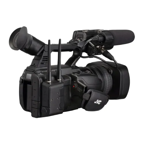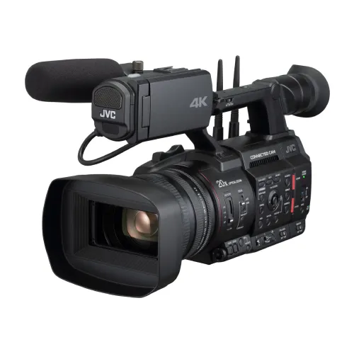 The JVC GY-HC550E 4K Handheld Camcorder is a top-tier choice for professional broadcasters and content creators who need powerful performance, excellent image quality, and reliable connectivity in the field. This JVC GY-HC550E 4K Camcorder features a large 1" CMOS sensor with F12 sensitivity for superior low-light capture, plus HDR recording options including HLG and J-Log1 for enhanced dynamic range. It supports 4K UHD 60p/50p ProRes 4:2:2 10-bit capture to SSD*, and 4K UHD 30p/25p/24p recording to SD cards, using flexible codecs such as ProRes, MPEG-4 AVC/H.264, and MPEG-2. Designed for versatile production, this JVC GY-HC550E 4K Handheld Video Camera uses a newly-developed 20x optical zoom lens with 40x lossless dynamic zoom, optical image stabilization, and built-in ND filters for complete creative control. It excels in live workflows with 4K recording + HD streaming, 4K HDMI output, 3G-SDI, and advanced IP streaming including SRT, Zixi*, and RTMPS support. With built-in dual-band MIMO Wi-Fi, LAN connectivity, Return over IP, IFB, Auto FTP upload, and professional broadcast overlay tools, the JVC GY-HC550E 4K Camcorder delivers a robust all-in-one solution for news production, event coverage, and high-end video creation. Rugged yet portable, it includes XLR audio, a high-resolution 4" LCD, and Quad-VGA EVF—making it an ideal choice for demanding on-the-go 4K productions.