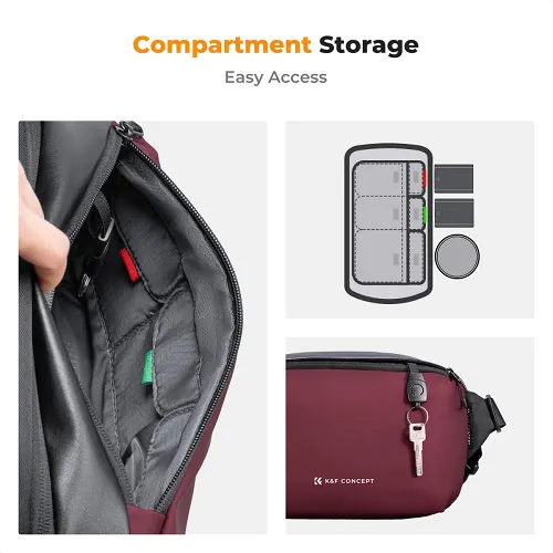 The K&F Concept KF13.157V7 Waterproof Shoulder Camera Bag is a versatile and compact sling-style bag designed for photographers who need both protection and convenience on the go. Made from durable, waterproof materials, the K&F Concept KF13.157V7 Shoulder Camera Bag protects your camera, lenses, and accessories from rain, dust, and scratches, keeping your gear safe in any environment. Featuring an ergonomic sling design, the K&F Concept KF13.157V7 Sling Camera Bag allows for comfortable carrying across the shoulder or chest, perfect for long outdoor shoots. Its quick side access design enables instant retrieval of your camera without removing the bag, ideal for capturing spontaneous moments. Inside, the “Magic Bin” customizable padded dividers of the K&F Concept KF13.157V7 Camera Bag provide flexible storage for your camera, lenses, and accessories while maintaining stability and protection. The stable and crush-proof construction, reinforced with concealed internal support fibers, ensures your equipment stays safe from impacts. Additionally, this compact bag includes tripod straps and accessory pockets, making it highly practical for travel and outdoor photography. The K&F Concept KF13.157V7 Waterproof Shoulder Camera Bag combines portability, accessibility, and maximum protection, making it a must-have for photographers on the move.