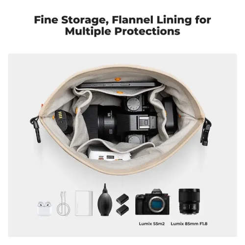 The K&F Concept KF13.168V1 Crossbody Sling Backpack is a premium, highly functional camera-carrying solution designed for photographers who value comfort, style, and quick accessibility. With its modern roll-top closure, elegant leather patch, and durable metal ring, this K&F Concept KF13.168V1 Crossbody Camera Backpack blends contemporary aesthetics with practical protection for your gear. Its compact yet efficient interior layout securely fits a camera body with 1–2 lenses, supported by adjustable and padded dividers that allow you to customize the storage space based on your equipment needs. The signature quick-access side opening makes this K&F Concept KF13.168V1 Sling Camera Backpack ideal for fast-paced shooting environments, letting you grab your camera instantly without removing the bag. Built from water-resistant materials, it ensures your gear stays safe from splashes, dust, and light rain, while multiple internal and external accessory pockets are perfect for organizing batteries, memory cards, filters, cables, and other essentials. Designed with mobility in mind, the backpack features a lightweight, ergonomic structure and a comfortable crossbody strap with breathable padding, making long hours of travel or street photography effortless. For photographers seeking a compact yet powerful carrying companion, the K&F Concept KF13.168V1 Camera Bag delivers a perfect blend of durability, convenience, and modern design.