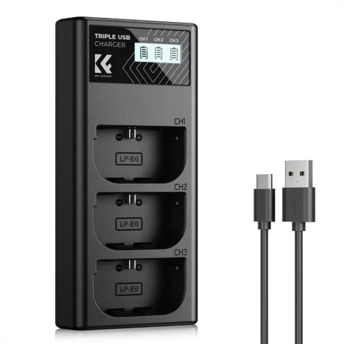 The K&F Concept LP-E6NH 3-Slot Camera Battery Charger is a smart three-channel design that allows users to charge up to three batteries at the same time or independently, saving crucial time on hectic assignments. The K&F Concept LP-E6NH Camera Battery Charger has both Micro USB and Type-C dual interfaces, providing diverse power input options; however, a Type-C connection is included to ensure faster and more steady charging performance. The K&F Concept LP-E6NH Battery Charger's smart design makes it perfect for usage at home, in the studio, on the go, and outdoors. One of the K&F Concept LP-E6NH 3-Slot Camera Battery Charger's most significant features is its compatibility. It is fully compatible with Canon EOS R5, R6, R7, 5D, 6D, and 7D Mark II cameras powered by LP-E6, LP-E6N, and LP-E6NH batteries. This extensive compatibility allows photographers to use a single K&F Concept Camera Battery Charger for different camera bodies. The K&F Concept LP-E6NH 3-Slot Camera Battery Charger's inbuilt digital LCD screen provides convenience by providing a clear four-level charging indicator for each battery, allowing users to confidently and accurately check charging status at a glance. The K&F Concept LP-E6NH 3-Slot Camera Battery Charger also has the advantage of supporting a variety of power sources. It may be charged by a laptop, desktop computer, vehicle charger, wall adapter, or power bank, making it ideal for traveling photographers and content creators on the go.