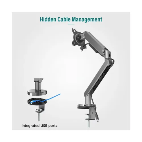 The Kaloc DS120 Adjustable Single Monitor Arm is a practical and space-saving monitor mount designed to improve desk organization and viewing comfort. It supports monitors from 17 to 32 inches and offers a load capacity of up to 9kg, making it suitable for most modern office and gaming monitors. This adjustable monitor arm helps create a cleaner workspace while positioning your screen at an ergonomic viewing height. The monitor arm features 360° swivel rotation and a tilt range of up to -45°, allowing users to easily adjust the screen for the most comfortable viewing angle. It supports VESA 75x75mm and 100x100mm mounting standards, ensuring compatibility with a wide range of monitors. With its durable build and flexible adjustment options, the Kaloc DS120 single monitor arm is an excellent choice for home offices, professional workstations, and gaming setups.