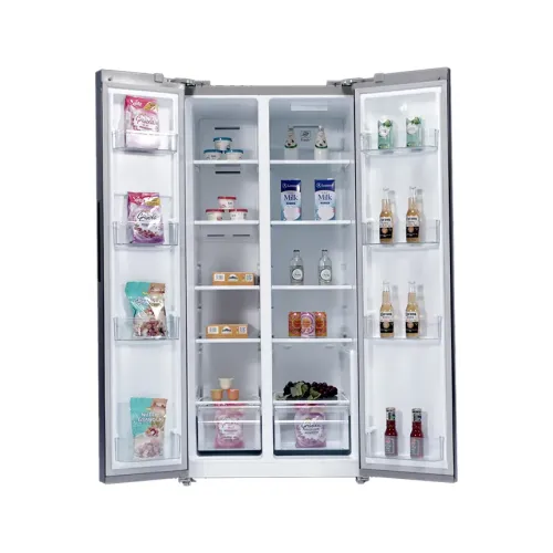 The Kelvinator KRS-537SBX 537 Liter Double Door Refrigerator is an innovative cooling solution designed for large homes that require maximum storage, superior functionality, and long-term performance. This model has a gigantic 537-liter capacity, with a spacious 337-liter fridge compartment and a 178-liter freezer, ensuring efficient food organization and long-term freshness. The Kelvinator KRS-537SBX 537 Liter Inverter Refrigerator uses modern inverter technology to intelligently regulate compressor speed, significantly reducing energy consumption while ensuring consistent cooling performance, consuming just 0.87 kWh per 24 hours. Featuring bottom heat dissipation, the unit expels heat effectively through its base-mounted condenser coils, maintaining optimal internal temperatures. The refrigerator supports multiple climate types SN, N ST T and operates on 220–240V at 50Hz, with a rated current of 1A and defrost input power of 210W, making it efficient and reliable under varied conditions. The Kelvinator KRS-537SBX is built with convenience and hygiene in mind. Its door opens at a 90-degree angle, ensuring easy access in tight spaces. The tempered glass door offers both visual elegance and robust durability, while anti-bacterial door gaskets protect stored food from harmful microbes. The 360-degree deodorization system eliminates unpleasant odors by purifying circulated air, maintaining a fresh-smelling interior. To further enhance food quality, its humidity control technology prevents excess moisture buildup and extends the life of fruits and vegetables. The built-in electronic temperature control system and digital display allow for precise settings, optimizing storage conditions for different food types. Additional features like the door alarm, child lock, and safety-locking racks elevate the overall user experience, offering not only safety and convenience but also a touch of premium utility. The Kelvinator KRS-537SBX 537 Liter Double Door Fridge also focuses on environmental responsibility, incorporating green technology such as R600a refrigerant and cyclopentane foaming material, both of which have low Global Warming Potential GWP and Ozone Depletion Potential ODP. Designed for low-noise operation, this refrigerator ensures a peaceful home environment while delivering powerful, efficient cooling. With its well-balanced dimensions of 911 x 636 x 1780 mm, the Kelvinator KRS-537SBX integrates seamlessly into modern kitchens, standing as a stylish, durable, and energy-conscious choice for today’s homes.
