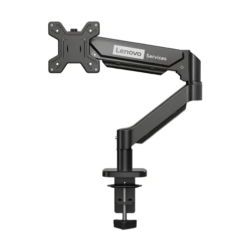 The Lenovo Services AM210 BK Single Monitor Arm is a compact yet durable mounting solution designed to improve ergonomics and maximize desk space, making it a reliable choice among Lenovo Monitor Arm accessories. Built with strong steel and aluminum construction, this single monitor arm supports screen sizes from 13″ to 24″ with a maximum load capacity of 9 kg, ensuring stability and compatibility with a wide range of smaller displays. The Lenovo Monitor Mount offers flexible adjustability with a tilt range of ±45°, swivel range of ±90°, and screen rotation of ±180°, allowing users to position their monitor at the most comfortable viewing angle whether working, studying, or streaming. With VESA mount compatibility (75×75 mm and 100×100 mm), installation is simple and secure across most standard monitors. Designed to free up valuable desk space, the Lenovo Single Monitor Arm helps create a clean, organized, and clutter‑free workstation while reducing neck and eye strain. Overall, the Lenovo AM210 BK Monitor Arm combines durability, ergonomic flexibility, and sleek design, making it an excellent choice for professionals, students, and home users who want a practical and space‑saving single arm monitor mount solution.