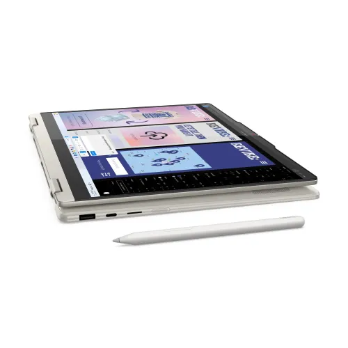 The Lenovo Yoga 7 2-in-1 14ILL10 OLED Touch Laptop is designed for users who value versatility, performance, and premium design in a compact form factor. Powered by the Intel Core Ultra 5 228V processor with 8 cores and turbo speeds up to 4.5GHz, this Lenovo Yoga 7 2-in-1 14ILL10 Core Ultra 5 228V Touch Laptop delivers reliable performance for productivity, creativity, and entertainment. It belongs to the Copilot+ PC category with an integrated Intel AI Boost NPU offering up to 40 TOPS, making it ready for modern AI-driven tasks. The integrated Intel Arc Graphics 130V ensures smooth visuals, while the 14-inch 2.8K OLED display with 2880x1800 resolution, 120Hz refresh rate, Dolby Vision, HDR True Black 1000, and 100% DCI-P3 color coverage creates a breathtaking visual experience. This Lenovo Yoga 7 2-in-1 14ILL10 Core Ultra 5 228V OLED Laptop also supports multi-touch and comes with the Lenovo Yoga Pen for enhanced creativity and productivity. It includes 32GB LPDDR5x-8533 memory soldered for fast multitasking and a 1TB PCIe 4.0 NVMe SSD for ample storage. Audio performance is equally impressive with four stereo speakers powered by Dolby Atmos and Smart Amplifier technology, along with a four-microphone array and a 5.0MP IR camera featuring a privacy shutter and Windows Hello facial recognition. The Lenovo Yoga 7 2-in-1 14ILL10 14-inch Touch Laptop combines elegance and durability with a recycled aluminum and vegan leather finish, anodized sandblasting treatment, and a slim yet sturdy design. Connectivity includes Wi-Fi 7, Bluetooth 5.4, Thunderbolt 4, USB-A, HDMI, and a microSD card reader. Security is enhanced with TPM 2.0 and privacy features, while certifications like ENERGY STAR 9.0, EPEAT Gold, TÜV Low Blue Light, and Intel Evo platform confirm its reliability. With its 70Wh battery, 65W USB-C adapter, and MIL-STD-810H durability, this Lenovo OLED Laptop delivers an exceptional combination of style, performance, and innovation, making it one of the most versatile Lenovo Laptop choices today.