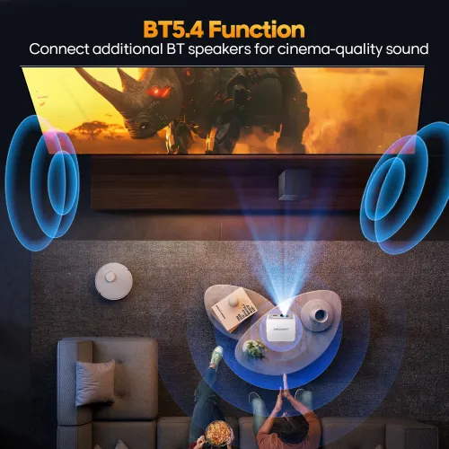 The Magcubic HY300Max Portable Projector is powered by the efficient Allwinner H726 chipset and operates smoothly. With latest Android 14 operating system, providing direct access to popular streaming apps, smart controls, and a snappy user interface without the usage of additional devices. With a native 720P resolution and a brightness output of 400 ANSI lumens, the Magcubic HY300Max Android Portable Projector produces crisp, vibrant images that are appealing in both dimly lit spaces and controlled lighting circumstances. The high contrast ratio of 2000:1 improves depth and detail, and over 150 percent color coverage offers rich, lifelike colors for movies, presentations, and casual gaming. The Magcubic HY300Max Portable Projector is designed for easy setup and includes auto focus, which instantly sharpens the image, as well as auto vertical keystone correction and manual horizontal keystone adjustment for flexible positioning in various settings. For advanced media support, this Magcubic Portable Projector supports video decoding up to 8K, ensuring smooth playback of modern high-quality content while producing optimal images. The built-in 5W speaker provides clear and balanced sound for everyday viewing. Users of the Magcubic HY300 Max Portable Projector may effortlessly connect wireless speakers or headphones using Bluetooth 5.4, while WiFi 6 enables faster and more consistent streaming with less buffering. Lightweight and portable, the Magcubic Projector is ideal for home entertainment, travel, office presentations, and casual outdoor use.
