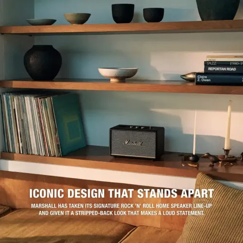 The Marshall Acton III features a re-engineered acoustic design that delivers a significantly wider stereo soundstage. By angling the tweeters outward and incorporating updated waveguides, this speaker creates a more immersive listening experience, filling the room with balanced, multidirectional sound. Whether you're sitting directly in front of it or off to the side, the Acton III ensures consistent audio clarity and depth, making every track feel more expansive and dynamic.
