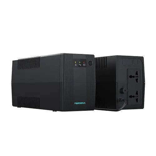 The Marsriva MR-UF650 650VA Smart Line-Interactive UPS is a powerful, compact uninterruptible power supply that provides dependable backup power and surge protection to sensitive electronic equipment in both home and business settings. With a 650VA capacity and 360W load support, the Marsriva MR-UF650 Offline UPS provides reliable power to PCs, modems, routers, and other critical equipment during power outages or voltage changes. This Marsriva 650VA UPS has an input voltage range of 145V - 290V (or 85V - 150V) and a regulated output voltage of 220V - 240V (or 110V - 120V), which is stabilized using Automatic Voltage Regulation (AVR) technology to protect connected devices from harmful surges or dips in power supply. It delivers clean power using a simulated sine wave output and features a rapid transfer time of 2–6ms (maximum 10ms), ensuring uninterrupted performance during utility failures. The Marsriva MR-UF650 650VA UPS is powered by a long-lasting 12V/7Ah sealed lead-acid battery and can recharge to 90% capacity in 4-6 hours, providing consistent runtime during power outages. Its cold start capability allows it to operate even when grid power is absent, giving you more options in an emergency. The UPS is whisper-quiet, with an audible noise level of less than 40dB, and a handy silent mode activation allows users to silence alerts with a single touch when in battery mode. A smart LED control panel displays real-time system status with clear indicators: green (line mode), yellow (battery mode), and red (fault mode). The Marsriva MR-UF650 UPS features an intuitive alarm system with specific alerts for battery mode, low battery, and overload, enhancing user awareness. Short circuit, overload, overcharge, and overdischarge safeguards are built into the UPS and connected devices' maximum safety and lifespan. The Marsriva MR-UF650 650VA Smart Line-Interactive UPS also has clever off-mode charging, which keeps the battery charged even when the device is switched off. It also supports USB connectivity and optional RJ45 for monitoring and administration. This UPS is both space-saving and portable, with dimensions of 305 x 94 x 139 mm and a weight of only 4.2 kg. It performs dependably in a variety of environments, with a temperature range of 0°C to 40°C and humidity tolerance of up to 95% (non-condensing). This model provides great performance, protection, and value, whether you need a trustworthy Marsriva MR-UF650 UPS for your home or a powerful Marsriva 650VA UPS for your corporate network.