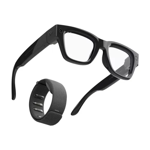 SpecialFeatures | 2 custom-built speakers (open ear) Custom 5-mic Array (2 in left arm, 2 in right arm, 1 near nose pad) and 1 contact mic on nose bridge Voice Command: Ask”Hey Meta” Camera: 12 MP ultra wide 3x Zoom Image: 3024 x 4032 pixels Video: 1440 x 1920 pixels @30fps Display: 20 deg FOV monocular display, 600x600 pixels Lens Treatment: Transitions Gen8 Wristband tech: Haptic Feedback Wristband Control: High Performance EMG |
