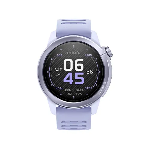 The Mibro GS Active2 is a premium smartwatch designed for high performance, durability, and all-day connectivity. This Mibro GS Active2 Smart Watch features a vivid 1.32-inch AMOLED round display with a sharp 466 x 466 resolution, 353 PPI, and an impressive 1200 nits peak brightness, ensuring crystal-clear visibility even under direct sunlight. Built from a robust combination of aluminum alloy, PA+GF, and dual-color liquid silicone or woven straps, the Mibro GS Active2 Smartwatch balances lightweight comfort (39.9g with woven strap, 51.7g with silicone) with exceptional durability. Powered by Bluetooth 5.3, it supports seamless Bluetooth calling and connects effortlessly with Android 5.0+ and iOS 10.0+ devices via the Mibro Fit app. Its outstanding battery performance delivers up to 45 days standby in unlinked mode, 15 days in Bluetooth call mode, 6 hours in music mode, 7 hours of continuous BT calling, and 15 hours in GPS mode. As a Mibro GS Active2 GPS Watch, it offers ultra-precise dual-frequency GPS for highly accurate route tracking, while 5ATM water resistance makes it perfect for swimming and outdoor adventures. This smartwatch also includes pro-level running coaching, comprehensive health tracking with PPG heart rate, blood oxygen, sleep, stress, breathing, menstrual cycle monitoring, and multiple sensors such as accelerometer, gyroscope, magnetometer, altitude, barometer, light sensor, and NFC. Supporting multiple languages, it delivers a complete package of features including sports records, route navigation, music and camera control, weather updates, world clock, compass, astronomy data, tides, flashlight, water drainage, and more. Available in stylish Dark Gray and Light Purple, the Mibro GS Active2 powered by Mibro OS 2.0 is the ideal choice for fitness, lifestyle, and safety needs.