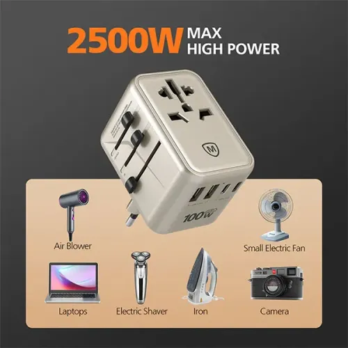 The Micropack MTA-5100 is a high-performance universal travel adapter designed for users who need fast, reliable charging across multiple devices and countries. With advanced GaN technology, it delivers up to 100W of total output, making it powerful enough to charge laptops, smartphones, tablets, and other electronics—all at the same time. It features three USB-C ports and two USB-A ports, intelligently distributing power based on device needs, including support for PPS fast charging protocols. Whether you're traveling for business or leisure, the Micropack MTA-5100 works in over 200 countries, adapting to local voltage standards with ease. Built with fire-retardant materials and equipped with overload, short-circuit, and temperature protection, it ensures safe charging wherever you go. The sleek, compact design fits easily into any travel bag, and its foldable prongs make it convenient to carry and use. Ideal for frequent flyers, remote workers, and tech-savvy users, this Micropack MTA-5100 100W 5 Port Travel Adapter combines speed, safety in one elegant solution.