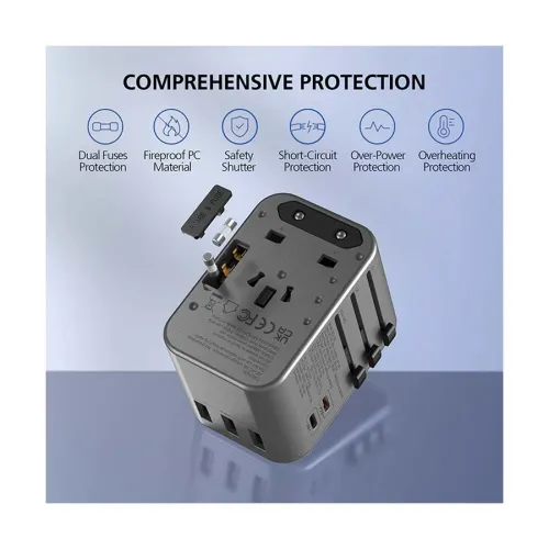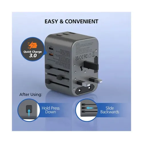The Micropack MTA-535 Universal Travel Charger is a compact powerhouse designed for modern travelers and multitaskers who demand speed, safety, and global compatibility. With five charging ports—three USB-A and two USB-C 35W wall charger delivers fast, intelligent power distribution across smartphones, tablets, earbuds, and even lightweight laptops. Whether you're working remotely or exploring new destinations, the Micropack MTA-535 ensures your devices stay charged and ready. Engineered for international use, this charger features interchangeable plug types (EU/US/AU/UK) and supports both 2-pin and 3-pin configurations. Its wide input range of AC100-240V and universal socket (non-grounded) make it ideal for global connectivity, while the rated power of up to 1840W at 240VAC ensures reliable performance even in high-demand environments. Despite lacking GaN technology or fireproof materials, the MTA-535 prioritizes safety with an 8A fuse rating, protocol recognition, and backup assurance to protect your devices from overcurrent and overheating. It supports advanced charging protocols including PD and PPS, with output configurations like PD+USB-C (20W+15.5W) and PD+USB-C+USB-A (20W+8W+7.5W), ensuring efficient multi-device charging without compromise. Whether you're powering up in a hotel room, airport lounge, or co-working space, this universal travel charger blends performance, portability, and protection—making it a smart investment for tech-savvy users and frequent flyers alike.