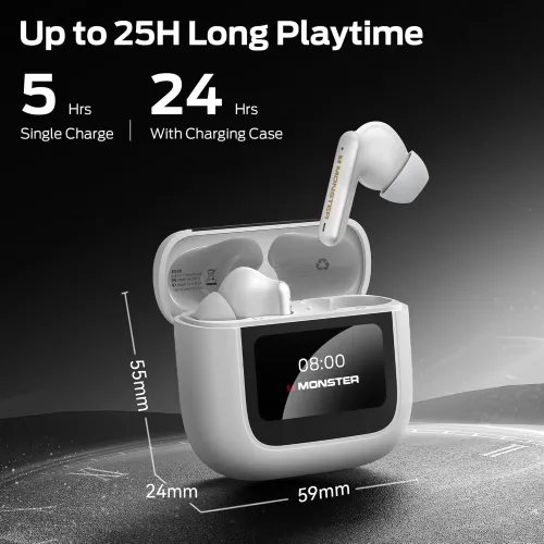 The Monster TH300 features a vibrant full-color touch screen for easy navigation. You can control music, adjust volume, switch settings, and check battery levels with smooth and intuitive gestures. The touch LED display makes the earbuds feel modern and smart, giving users quick access to essential functions without using a phone.
