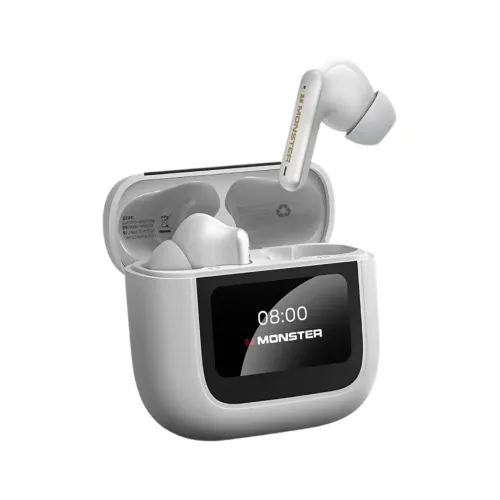 The Monster TH300 includes smart functions such as Bluetooth photography, language switching, brightness control, and earbud tracking for added convenience. The IPX5 water resistance protects the earbuds from sweat and splashes, making them ideal for workouts or outdoor use. Their sleek and ergonomic shape ensures secure and comfortable wearing for long sessions. In the box, you get the Monster TH300 earbuds, charging case, user guide, and extra ear tips for a perfect fit.