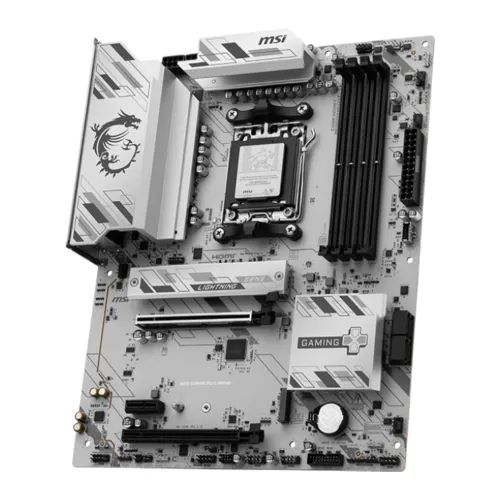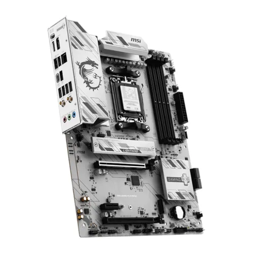 The MSI B850 GAMING PLUS WIFI6E AM5 ATX Motherboard is designed for PC enthusiasts and gamers who require dependability, speed, and power. This MSI B850 motherboard, which is made to handle AMD Ryzen 9000, 8000, and 7000 Series desktop processors, offers exceptional performance with dual-channel DDR5 memory support up to 8200+ MT/s (OC). The MSI B850 Motherboard, which is constructed on a sturdy 6-layer 2 ounce copper PCB, has a 12+2+1 Duet Rail Power System with dual 8-pin CPU connectors, Core Boost, and Memory Boost technologies for increased stability. In order to maintain temperature management throughout longer gaming sessions, the MSI AM5 Motherboard uses the Frozr Guard design, which includes extended heatsinks, 7W/mK MOSFET thermal pads, choke pads, and an EZ M.2 Shield Frozr II. The MSI B850 GAMING PLUS WIFI6E Motherboard provides high-speed connectivity, including 2.5G LAN and Wi-Fi 6E for safe and fast networking. Gamers will like the PCIe 4.0 slots, Lightning Gen 5 x4 M.2 compatibility, and front USB Type-C connection for fast data transfers. The storage options include two M.2 slots (PCIe 5.0 and PCIe 4.0) and four SATA 6G ports with RAID 0, 1, and 10. The MSI B850 GAMING PLUS WIFI6E Motherboard provides visual output via HDMI 2.1 and DisplayPort 1.4, which supports 4K at 60Hz. The EZ DIY features, such as the EZ PCIe Clip II, EZ M.2 Clip II, EZ-Conn design, and EZ antenna, make construction simple. Realtek ALC897 delivers premium audio with 7.1-channel HD sound and Audio Boost technology for engaging gaming experiences. The MSI B850 GAMING PLUS WIFI6E AM5 ATX Motherboard supports Bluetooth 5.3 and MU-MIMO Wi-Fi 6E, giving you complete wireless freedom. This MSI motherboard is compatible with Windows 11 64-bit, ensuring a future-ready and efficient gaming setup.