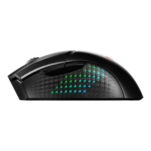 The MSI CLUTCH GM51 LIGHTWEIGHT WIRELESS RGB Gaming Mouse is a premium wireless gaming mouse engineered for competitive performance. Designed for right-handed gamers, this lightweight 85g mouse features MSI’s patented Diamond LightGrips, offering a secure anti-slip grip and dazzling customizable RGB lighting via MSI Center. At its core lies the elite PixArt PAW-3395 optical sensor, delivering up to 26,000 DPI, 650 IPS tracking, and 50G acceleration — perfect for esports-level micro-movements and flawless responsiveness.Connectivity is seamless with tri-mode options: MSI SWIFTSPEED 2.4G wireless for ultra-low latency, Bluetooth for flexible pairing, and wired USB for uninterrupted gameplay. The ergonomic shape enhances palm support, reducing fatigue during long gaming sessions. With MSI SPEEDSHIFT technology, users can fine-tune performance across three modes — from general use to high-speed competitive play.Charging is effortless with two advanced solutions: MSI Snap Charging for rapid power-ups via USB 3.0 ports, and the sleek MSI Charging Dock that doubles as a stylish display stand. The built-in 550mAh battery delivers up to 150 hours of playtime (with RGB off), ensuring uninterrupted action.Gamers seeking the best wireless RGB gaming mouse will appreciate the CLUTCH GM51’s blend of sensor tech, ergonomic design, and customizable features. With support for NVIDIA Reflex Analyzer, this MSI CLUTCH GM51 LIGHTWEIGHT WIRELESS mouse helps measure system latency for peak competitive advantage. Whether you're dominating FPS titles or grinding through long sessions, the MSI CLUTCH GM51 LIGHTWEIGHT WIRELESS is built to win — combining speed, style, and substance in one powerful package.