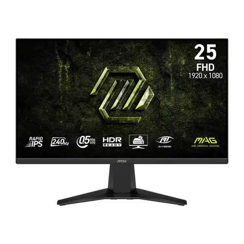 The MSI MAG 255F X24 24.5" 240Hz Rapid IPS FHD Gaming Monitor is built for speed, clarity, and competitive performance. With Full HD resolution, a rapid IPS panel, and ultra-fast 240Hz refresh rate, this MSI 24.5 inch gaming monitor delivers smooth visuals, accurate colors, and responsive gameplay. Perfect for esports players and enthusiasts, it combines cutting-edge technology with sleek design.