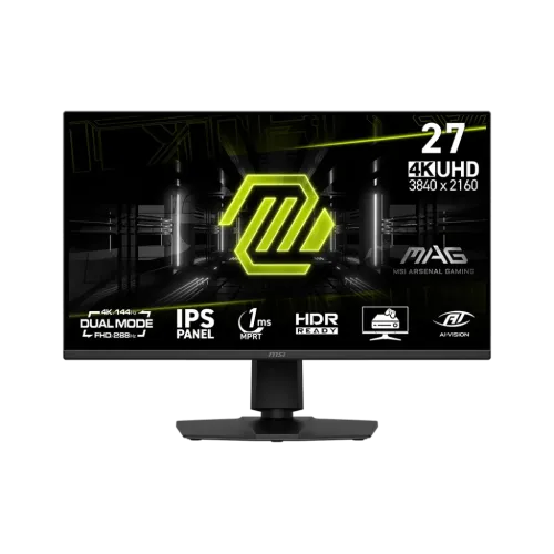 The MSI MAG 275UPD E14 27" Gaming Monitor is a premium choice for gamers seeking both high resolution and ultra-smooth gameplay. Designed with a flat 27-inch IPS panel, this monitor delivers a crystal-clear UHD (3840 x 2160) resolution and supports Dual Mode, enabling gamers to seamlessly switch between 4K at 144Hz and Full HD (1920 x 1080) at an astonishing 288Hz—ideal for both competitive esports and cinematic gaming. With a rapid 1ms MPRT response time, Adaptive-Sync, and HDR Ready support, the MSI MAG 275UPD E14 27" 4K Gaming Monitor ensures ultra-responsive gameplay and vibrant, lifelike visuals. The anti-glare screen, combined with 10-bit color depth (1.07 billion colors) and exceptional color coverage—DCI-P3 at 90%, Adobe RGB at 84%, and sRGB at 130% (CIE 1976)—makes it perfect for color-accurate experiences in both games and creative workflows. Connectivity is comprehensive on the MSI MAG 275UPD E14 Gaming Monitor, offering 2 x HDMI 2.1 ports supporting 4K at 144Hz, 1 x DisplayPort 1.4a, and 1 x headphone-out jack, making it compatible with high-end PCs and the latest gaming consoles like PS5 and Xbox Series X|S. It also supports HDMI CEC and Variable Refresh Rate (VRR) for smooth console gaming. Designed with ergonomics in mind, this gaming monitor features full adjustability with 5° to 20° tilt, -30 ° to 30° swivel, 90° to 90° pivot, and 130mm height adjustment, ensuring optimal comfort during long sessions. Navigation is made effortless with the built-in 5-way joystick controller and One-Click Dual Mode Switch, enhancing the user experience with intuitive access to settings. In terms of design and construction, the MSI MAG 275UPD E14 27" Monitor is built for durability and style, incorporating the robust and thermally efficient design principles of MSI's MAG series. With a brightness of 250 nits, a static contrast ratio of 1500:1, and a dynamic contrast of 100,000,000:1, every detail is sharp and vivid. The monitor offers a wide 178° viewing angle and supports multiple aspect ratios, including a 24.5” mode, catering to a variety of gaming preferences. The unit is VESA mount compatible (100 x 100mm), includes a Kensington lock, and is powered by a built-in internal board with 100–240V, 50/60Hz input. It measures 613.3 x 227.9 x 534.2mm with stand, weighs 6.1kg (net) / 8.7kg (gross), and ships with all necessary accessories. With advanced features like AI Navigator, console mode optimization, ultra-high refresh rates, and unmatched color fidelity, the MSI MAG 275UPD E14 27" 4K Gaming Monitor is the ultimate display solution for gamers who demand performance, precision, and versatility in every frame.