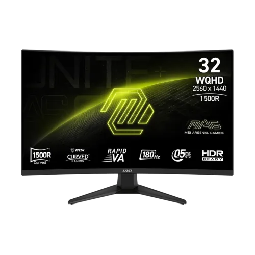 The MSI MAG 321CQF E18 32" Curved Gaming Monitor is a powerhouse display engineered for immersive gameplay and professional-grade visuals. Featuring a 1500R curved Rapid VA panel with WQHD resolution (2560 × 1440), this 31.5-inch monitor delivers ultra-smooth performance with a blazing 180Hz refresh rate and lightning-fast 0.5ms response time. Gamers benefit from AMD FreeSync technology and HDR Ready support, ensuring tear-free, vibrant visuals across every frame. With wide color coverage—89% Adobe RGB, 92% DCI-P3, and 124% sRGB—plus 1.07 billion display colors, it's ideal for both gaming and content creation. The MSI 32" Gaming Monitor includes dual HDMI 2.0b ports, DisplayPort 1.4a, and headphone-out, supporting console modes at 1080p and 1440p up to 120Hz. Its anti-glare surface, frameless design, tilt adjustment, and VESA mount compatibility enhance comfort and flexibility. Powered by an internal board with universal voltage support (100–240V), the MSI MAG 321CQF E18 is a top-tier choice for gamers seeking performance, style, and versatility in one sleek package.