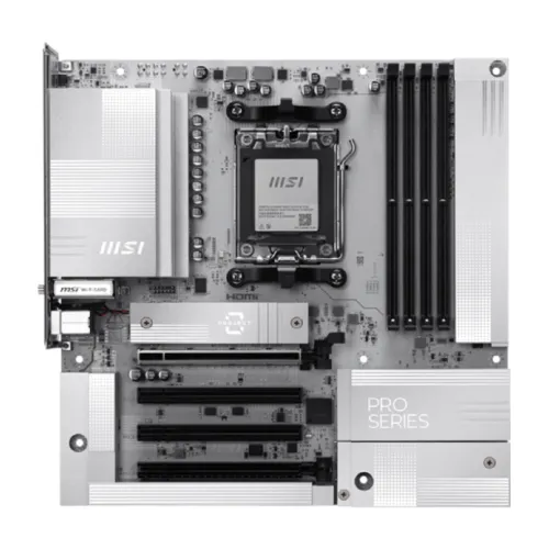 The MSI PRO B850M-A WIFI PZ AM5 mATX Motherboard is built to deliver outstanding reliability, speed, and performance for modern PC builders and gaming enthusiasts. Supporting AMD Ryzen 9000, 8000, and 7000 Series desktop processors, this MSI AM5 Motherboard offers exceptional power efficiency and overclocking potential through its robust Direct 8+2+1 Power System with 60A SPS and 8+4-pin CPU connectors. Engineered with a 6-layer PCB made from 2oz thickened copper and server-grade materials, the MSI PRO B850M-A WIFI PZ Motherboard ensures stable power delivery and thermal performance under heavy workloads. It supports dual-channel DDR5 memory with speeds up to 8200+ MT/s (OC), enabling lightning-fast data processing and multitasking capabilities. The Frozr Guard thermal design features extended heatsinks, 7W/mK MOSFET thermal pads, choke thermal pads, and an M.2 Shield Frozr to maintain consistent cooling for high-performance components. The MSI PRO B850M-A WIFI PZ AM5 mATX Motherboard also brings cutting-edge connectivity with PCIe 5.0 support and Lightning Gen 5 x4 M.2 slots, providing ultra-fast storage and expansion options for gamers and professionals. It includes Realtek 8126 5G LAN and the latest Wi-Fi 7 technology for secure, high-speed networking, making it ideal for gaming, content creation, and productivity. With user-friendly EZ DIY features such as EZ M.2 Clip II, EZ PCIe Clip II, and EZ Antenna setup, building with this MSI Motherboard is straightforward and efficient. Audio Boost technology delivers immersive studio-grade sound, while multiple USB 10Gbps Type-C and Type-A ports offer versatile connectivity. Compact yet powerful, the MSI PRO B850M-A WIFI PZ AM5 mATX Motherboard embodies durability and innovation with its military-grade components, RGB support, and Windows 11 compatibility. For anyone seeking a dependable MSI BTF Motherboard that blends performance, efficiency, and future-ready technology, the MSI PRO B850M-A WIFI PZ Motherboard stands as an exceptional choice for next-gen PC builds.