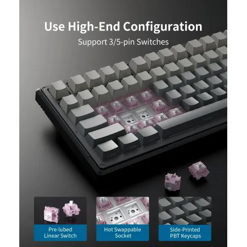 | Others | Hot-Swappable Switches 5-Layer Silent Gasket Architecture Side-Printed PBT Keycaps DIY Freedom |