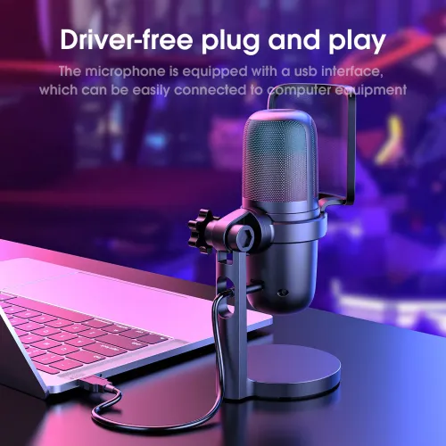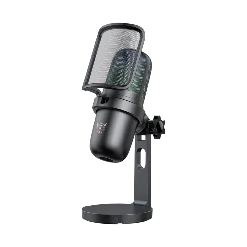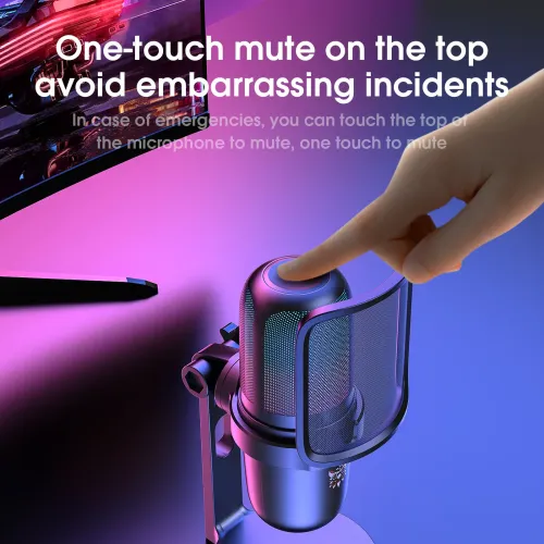 The Onikuma M730 RGB Gaming Microphone is intended for streamers, gamers, and content creators that want clear voice recording. The Onikuma M730 RGB Microphone features a bright RGB gradient lighting effect that matches any gaming or streaming setup, as well as a convenient one-touch mute button that allows users to manage audio with a single tap. The Onikuma M730 Microphone, which has noise reduction technology and soundproofing panels, generates clean, natural sound by minimizing background disturbances and focusing on speech clarity. The Onikuma Microphone has a sensitivity of -38 ± 3dB and impedance of 2.2KΩ. It offers balanced audio pickup throughout a frequency response range of 100Hz to 10,000Hz, making it ideal for streaming, podcasting, gaming, online meetings, and voice recording. The Onikuma M730 RGB Gaming Microphone connects easily via USB Type-C and operates on 5V DC power, ensuring steady and reliable performance. The 2-meter cable length allows for convenient positioning on desks, and the rotating stand allows users to adjust the microphone tilt for the best fit. Users can also adjust the audio level to suit their preferences, resulting in comfortable and precise sound management. The microphone may be detached from the base for more convenience and mobility, making the Onikuma RGB Microphone suited for a wide range of applications. The Onikuma M730 Microphone is designed to be both functional and visually appealing, with RGB lighting, a touch mute feature, high-quality speech capture, and long-lasting Type-C connectivity.