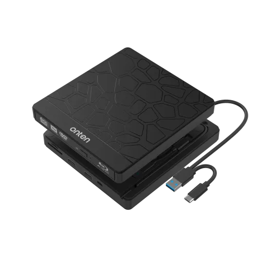 The Onten OTN-UCD22 DVD Writer is a high-performance, portable optical drive that combines versatility, speed, and durability for users who need reliable disc reading and writing capabilities. Supporting Blu-ray, DVD, and CD (read & write) formats, the Onten OTN-UCD22 External DVD Writer delivers seamless performance across multiple operating systems, including Windows XP/7/8/10/11, macOS, and Linux, making it an ideal solution for both personal and professional use. Equipped with a built-in dual USB cable (Type-C + Type-A), the Onten OTN-UCD22 Portable DVD Writer ensures fast and stable connectivity, with USB 3.0 speeds of up to 5 Gbps for quick data transfer, smooth video playback, and reliable disc burning. The device features versatile interfaces including USB-C and USB-A uplink ports, 2× USB-A downlink ports (480 Mbps), a USB-C power input (5V), an SD card slot, and a TF (microSD) card slot, making it a multifunctional hub for modern computing needs. Built from anti-slip textured ABS plastic, the Onten OTN-UCD22 is lightweight, shock-resistant, and low-noise, with advanced error correction technology to ensure accurate data reading and writing. Its compact dimensions of 154.72 × 143.8 × 19.2 mm make it highly portable, while its plug-and-play design allows instant use without additional drivers. Whether you are working on laptops, desktops, or ultrabooks without built-in optical drives, the Onten OTN-UCD22 Portable DVD Writer is a reliable and durable choice for home, office, or travel use.
