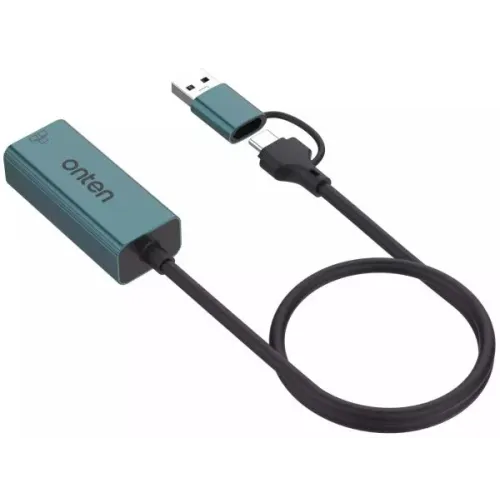 The Onten OTN-UE106 USB-C + USB-A to Ethernet Adapter is a compact, plug-and-play solution for fast, stable wired internet across multiple devices. Its dual-port design ensures seamless compatibility with both legacy and modern systems. Crafted for versatility and performance, the Onten UE106 features dual uplink ports USB-C and USB-A making it ideal for laptops, tablets, and desktops running macOS, Windows, Linux, Android, or iPadOS. Whether you're using a MacBook, Surface, or Android tablet, this adapter bridges your device to a reliable wired network via its RJ45 downlink port supporting 100Mbps/10Mbps Ethernet speeds. This ensures low-latency connections for streaming, gaming, video conferencing, and large file transfers, especially in environments where Wi-Fi is unstable or restricted. The adapter’s sleek aluminium alloy and PVC construction not only enhance durability but also provide a premium look and feel. No drivers or software installation required—just plug and play, making it a hassle-free upgrade for users who need instant network access. This adapter delivers universal compatibility, fast Ethernet performance, and robust build quality in one compact package. For users seeking a reliable USB-to-Ethernet converter that supports both USB-C and USB-A, the Onten UE106 stands out as a future-proof, user-friendly choice