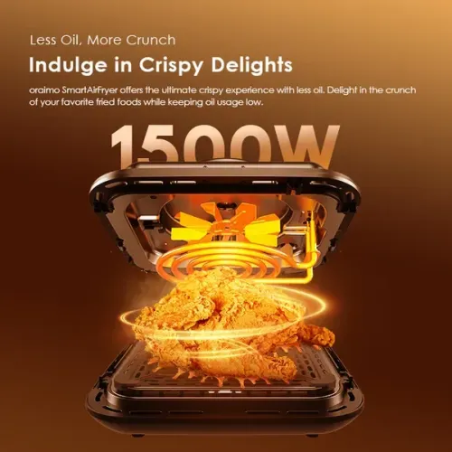 The Oraimo SmartAirFryer focuses on healthier cooking by reducing the need for excess oil. The advanced hot air circulation system cooks food evenly while producing a crispy outer texture. Users can enjoy favorite fried foods with significantly less oil when using the Oraimo SmartAirFryer 1500W Air Fryer. This cooking method supports healthier eating habits without sacrificing taste or texture. Foods such as fries, chicken wings, and vegetables remain crunchy while maintaining natural flavor.