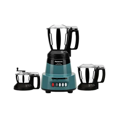 Panasonic MX-GC3550 3 Jars Mixer Grinder is a premium-grade kitchen appliance engineered for high-speed performance, multi-functionality, and long-term durability. Backed by a powerful 900W motor with HPAF technology, this mixer grinder delivers an impressive 19,000 RPM, making it ideal for intensive tasks like dry grinding, blending, grating, mincing, and chutney preparation. Whether you're crushing hard spices, making silky smoothies, or preparing traditional Bangladeshi pastes, the MX-GC3550 ensures consistent results with minimal effort. This Blender includes three high-quality stainless steel jars designed for specific culinary needs: a 1.5L liquidizing jar for juices and shakes, a 1L grinding jar for masalas and grains, and a 0.4L chutney jar for dips and sauces. Each jar features razor-sharp Samurai Edge blades that retain their cutting efficiency over time, while the secure locking lids prevent spills during operation. With 3-speed control settings, users can easily adjust the grinding intensity to suit different ingredients and textures. The Panasonic MX-GC3550 Mixer Grinder runs on a stable 220–240V power supply, ensuring energy-efficient performance in households. Safety features like the safety lock system, circuit breaker protection, and non-slip base provide peace of mind during use, even in busy kitchens. The Panasonic MX-GC3550 boasts a sleek, space-saving design with a modern finish that complements any kitchen décor. Its easy-to-clean surfaces and detachable components make post-cooking cleanup hassle-free. Whether you're a home chef or a busy parent, this Panasonic MX-GC3550 Mixer Grinder offers the perfect balance of power, precision, and practicality.