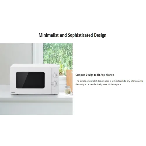 The Panasonic NN-SM33NW 25 Liter Solo Microwave Oven is a perfect kitchen companion that blends minimalist design with powerful performance. Ideal for modern households, this solo microwave offers a spacious 25-liter capacity—perfect for reheating family-sized meals, defrosting frozen items, or preparing quick bites with ease. Its compact footprint ensures it fits comfortably into any kitchen layout, from studio apartments to full-sized culinary spaces, without compromising on functionality. The Panasonic NN-SM33NW has a robust 900W cooking power, delivering fast and even heating across a wide range of dishes. Whether you're warming up leftovers or steaming vegetables, its consistent output ensures reliable results every time. The oven features a side-opening door with a push-to-open button, offering smooth, one-touch access that’s especially convenient when your hands are full. The 288mm turntable accommodates larger plates and cookware, making it versatile enough for everyday use . Designed with user-friendly controls, the microwave includes a mechanical dial panel and a timer function that allows precise cooking up to 35 minutes. This analog interface is intuitive and durable, making it ideal for users of all ages. Built with Japanese technology, the Panasonic NN-SM33NW promises long-term reliability and energy efficiency. The Microwave operates on a standard 240V / 50Hz power source, making it compatible with most household electrical systems. Its clean white interior and acrylic grey exterior add a touch of elegance to your kitchen, while the sturdy handle and glass door enhance both safety and style. Whether you're a busy professional, a student living solo, or a family looking for a dependable microwave for everyday tasks, the Panasonic NN-SM33NW 25L Microwave Oven is a smart, affordable choice.